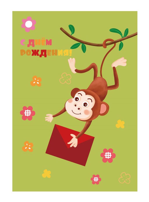 Пакет бумажный подарочный L "С Днем рождения. Обезьянка с письмом" зеленый 23x11x33 см (026)