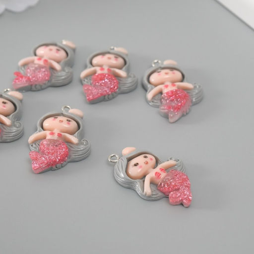 Цена за 6 шт. Подвеска для творчества пластик Русалочка с серыми волосами, 3.42.10.6 см