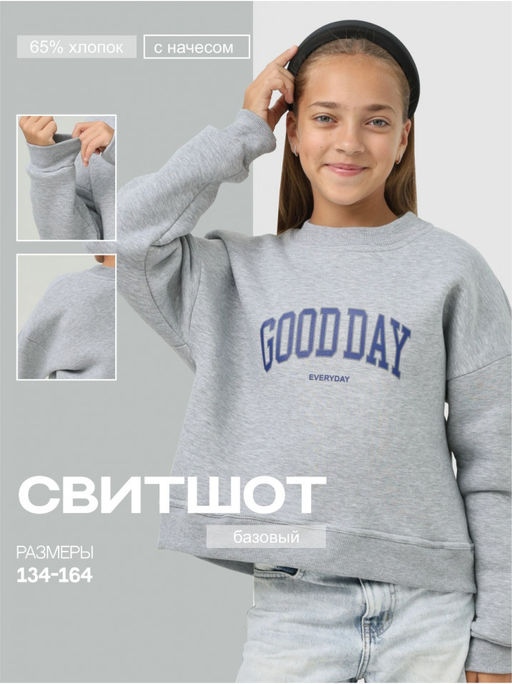 Артикул: Свитшот Начес "Эвердэй" Серый Меланж Девочка
