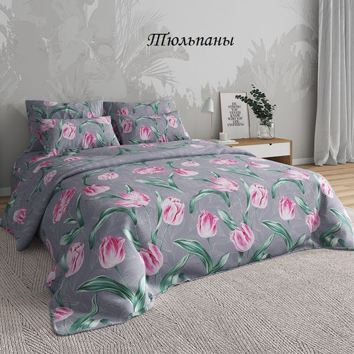 Артикул: Тюльпаны, Бязь Премиум с эффектом антипиллинг семейный