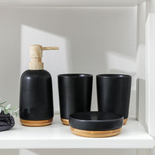 Аксессуары для ванной Эко, 4 предмета, мыльница, дозатор для мыла, 2 стакана, чёрные