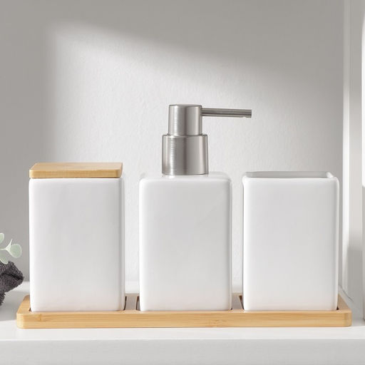 Набор аксессуаров для ванной комнаты SAVANNA Square, 4 предмета, дозатор для мыла, 2 стакана, подставка, белый