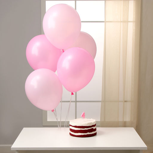 Свеча для торта, цифра 4 + воздушные шары, 5 шт, розовый