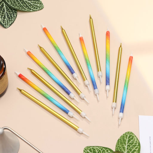 Свечи для торта Радуга, 12 шт., золото и разноцветный
