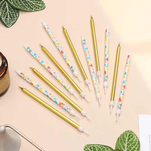 Свечи для торта Сердца, 12 шт., золотые и белые