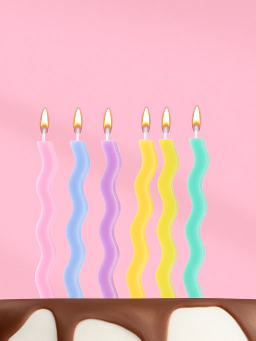 Цена за 2 шт. Свечи для торта Волна, 6 шт., разноцветные