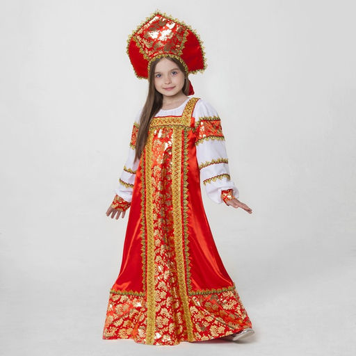 Русский народный костюм Любавушка, платье-сарафан, кокошник, р-р 34, рост 134 см, красный