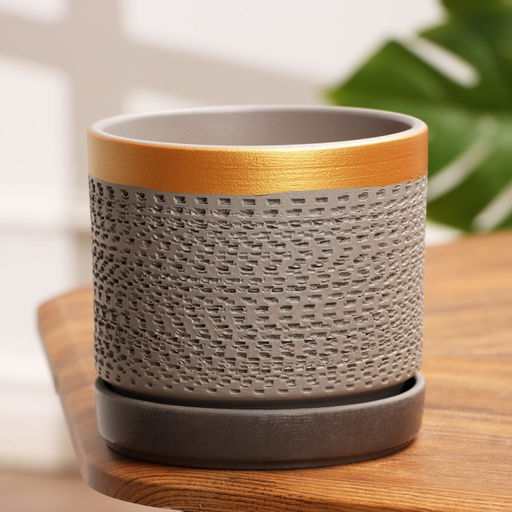 Горшок цветочный "Брюссель" серый золото цилиндр №2, 1,5 л