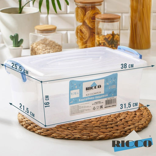 Контейнер пищевой, 9.75 л, 37.52514 см, прямоугольный, прозрачный, ручки МИКС