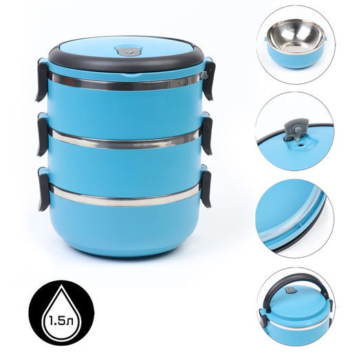 Ланч-бокс "Доляна", 1.5 л, 3 тарелки, сохраняет тепло 3 ч, 16 х 19 см, синий