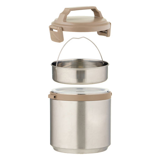 Термос для еды, 1.8 л, сохраняет тепло до 8 ч, нержавеющая сталь, серебристый, бежевый