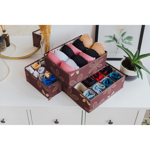 Набор органайзеров для хранения белья Листочки, 3 шт, 322412 см, цвет коричневый