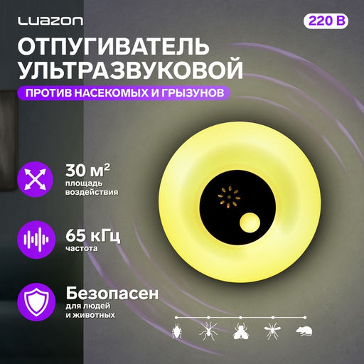 Отпугиватель насекомых и грызунов LRI-51, ультразвуковой, 30 м2, ночник, 220 В, белый