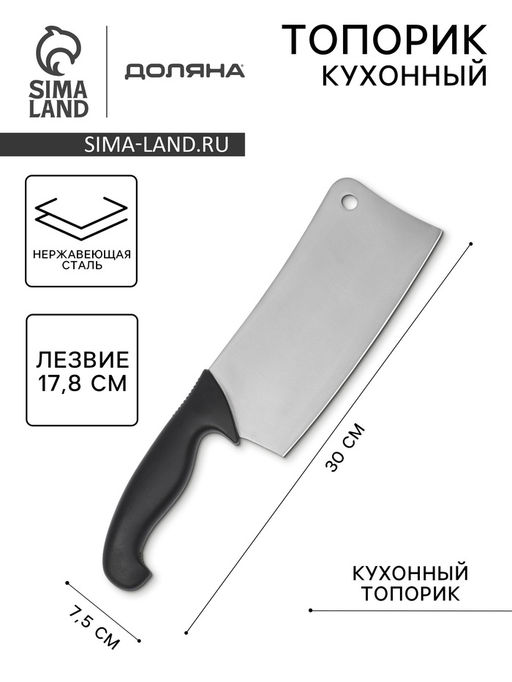 Топорик кухонный для рубки мяса Sharp, лезвие 17.8 см, нержавеющая сталь, чёрная ручка