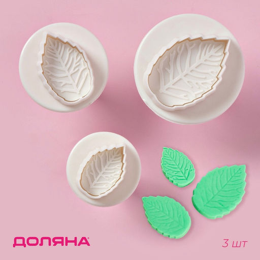 Плунжеры кондитерские Доляна Лист, набор 3 шт., d=3.2/4/5 см, пластик, белые
