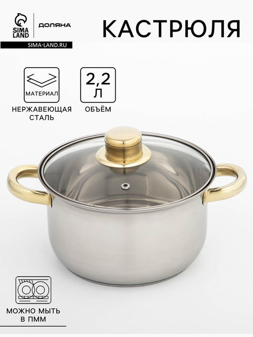 Кастрюля Доляна Роскошь, 2.2 л, d=19 см, с крышкой, капсульное дно, нержавеющая сталь