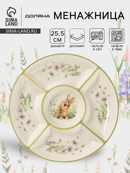 Менажница Доляна Зайка, 5 ячеек, d=25.5 см, доломит, белая