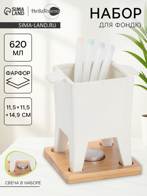 Набор для фондю BellaTenero, 620 мл, 4 шпажки, фарфор, белый