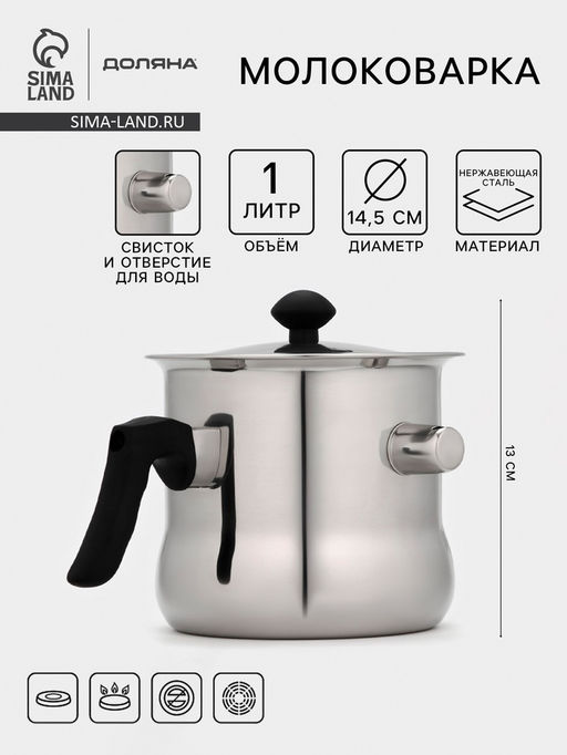 Молоковарка Доляна, 1 л, h=13 см, d=14.5 см, нержавеющая сталь