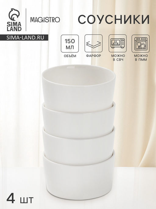 Соусники Magistro White Snow, набор 4 шт., 150 мл, фарфор, белые