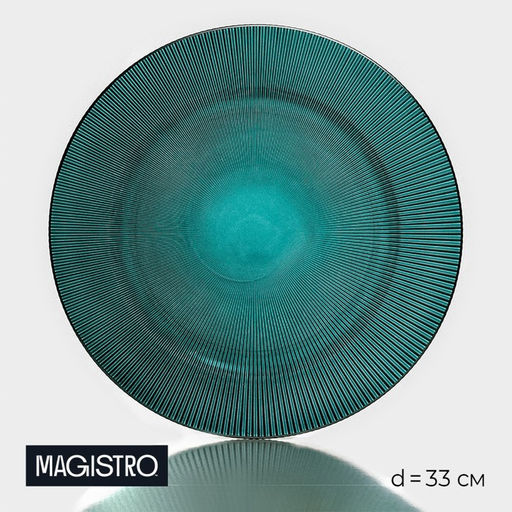 Тарелка-блюдо подстановочное Эмеральд, d=33 см, с серебряной отводкой, стекло, зелёная