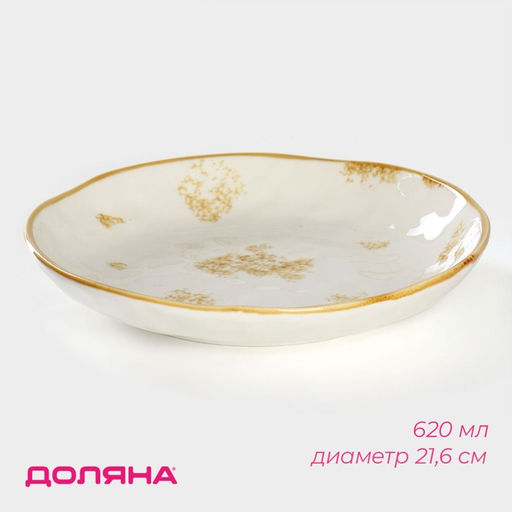 Тарелка глубокая Доляна Organic Gold, 620 мл, d=21.5 см, фарфор, белая