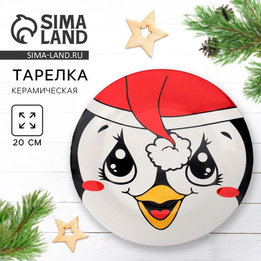 Тарелка плоская новогодняя Пингвиненок, d=20 см