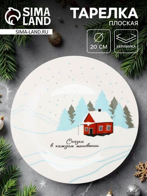 Тарелка плоская новогодняя Зимний пейзаж, d=20 см