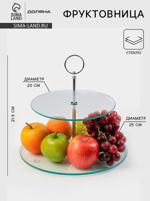 Фруктовница 2-х ярусная круглая Доляна, d=25/20 см, стекло, прозрачная