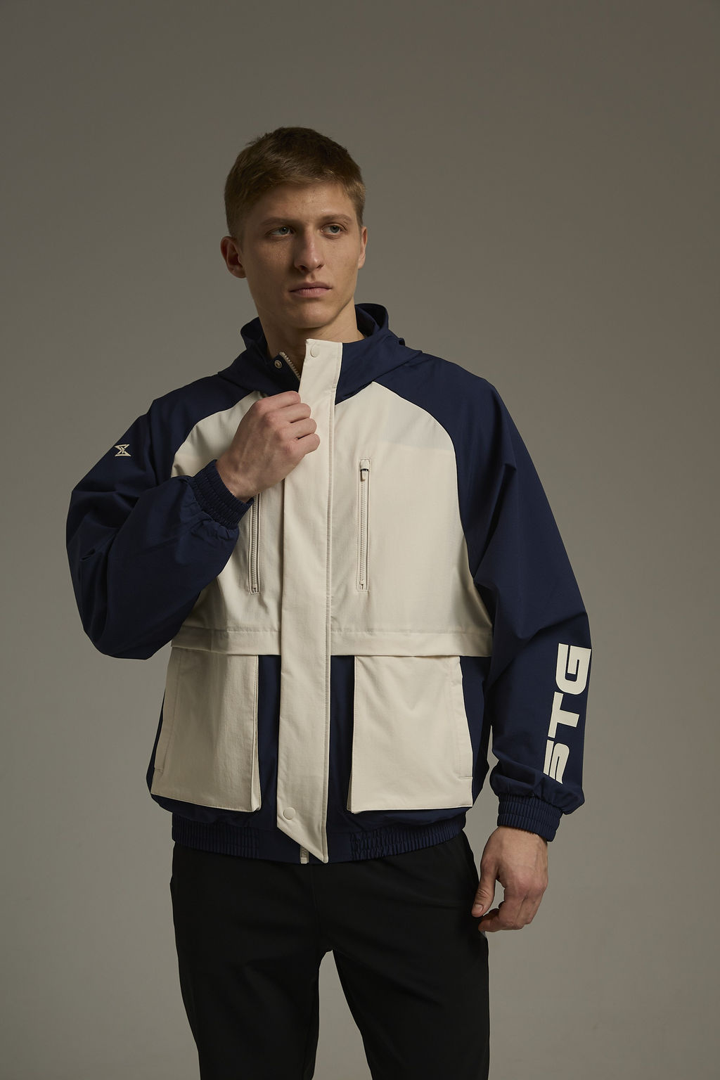 Ветровка с капюшоном Темно-синий/Бежевый