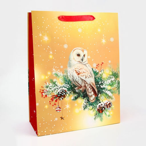 Пакет подарочный новогодний ламинированный Совушка, 33?42.5?10 см