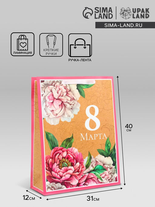 Пакет подарочный ламинированный вертикальный Счастье, L 31?40?12 см