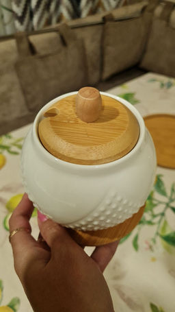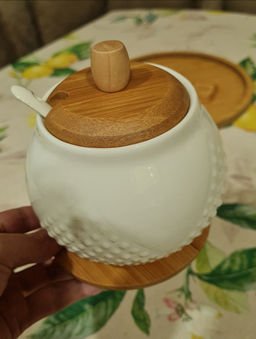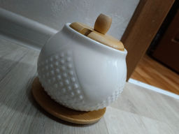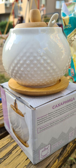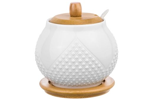 Сахарница 620 мл 11*11*12 см "Ромбики" + ложка + дер. крышка на дер. подставке