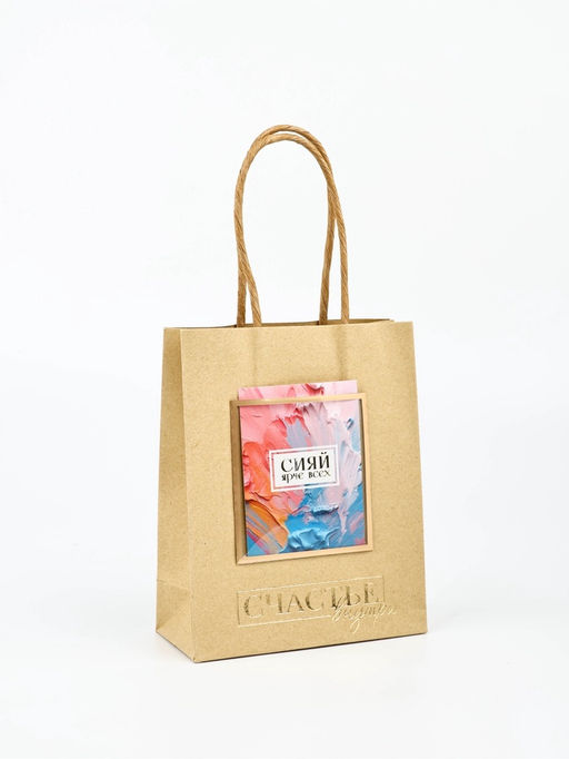 Цена за 3 шт. Пакет крафтовый с открыткой Желаю счастья, S 12 х 5.5 х 15 см