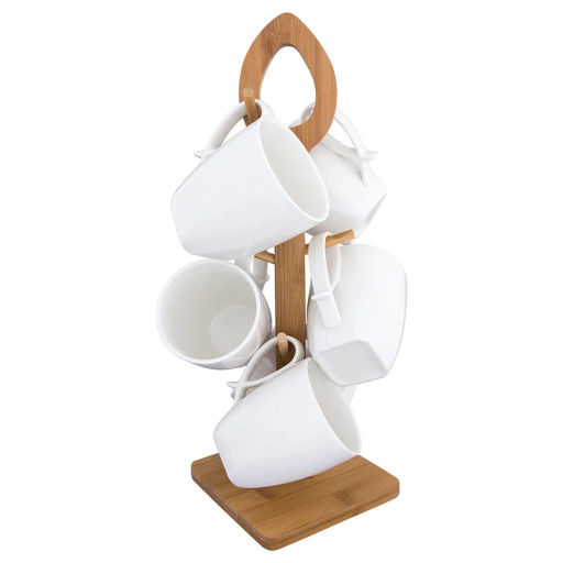 Набор 6 кружек 300 мл 16*18*38 см "Айсберг" на дерев. подставке с ручкой