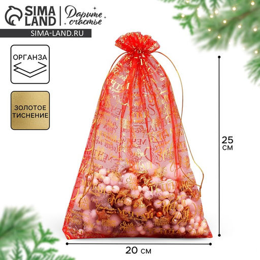 Цена за 20 шт. Мешочек подарочный новогодний органза Уюта и тепла, 20 х 30 см +/- 1.5 см