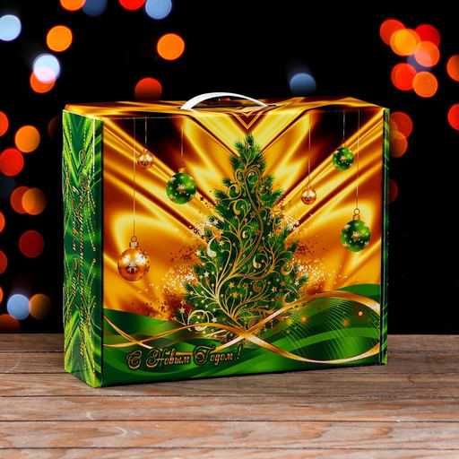Цена за 2 шт. Подарочная новогодняя коробка Праздничный Шелк в зеленом 29?9?25 см