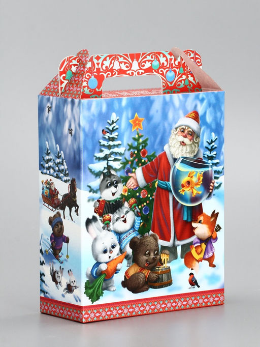 Цена за 10 шт. Подарочная коробка новогодняя Золотая рыбка 14?6?21 см