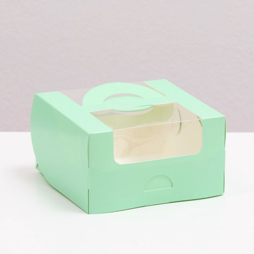 Цена за 5 шт. Коробка под бенто - торт с окном, мятный, 14?14?8 см