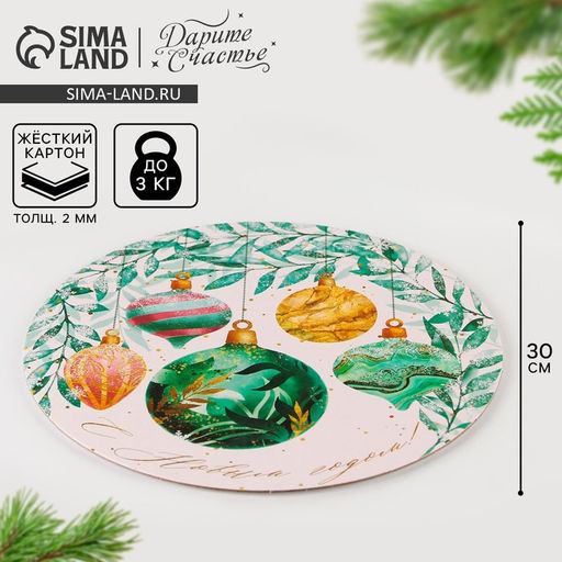Цена за 5 шт. Подложка под торт усиленная С Новым годом, 30 см, 2 мм
