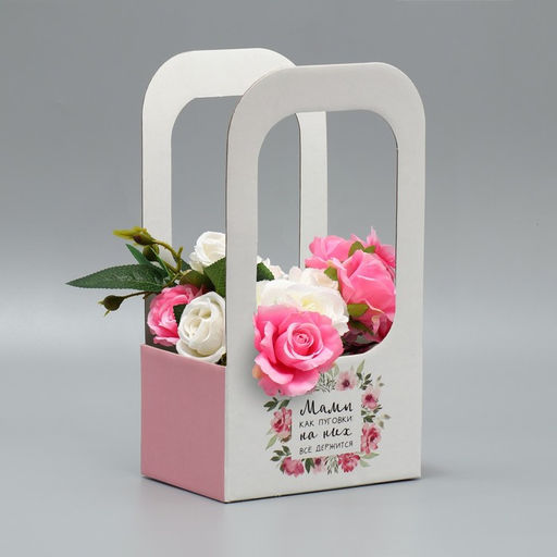 Коробка-переноска для цветов Мамы, как пуговки, 17?12?32 см