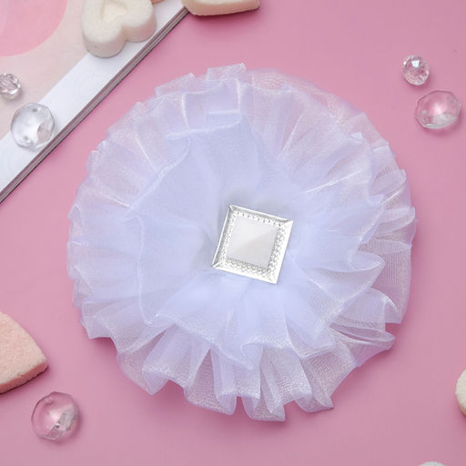 Цена за 6 шт. Бант для волос на резинке Школьница, волна квадрат, d=10 см, белый