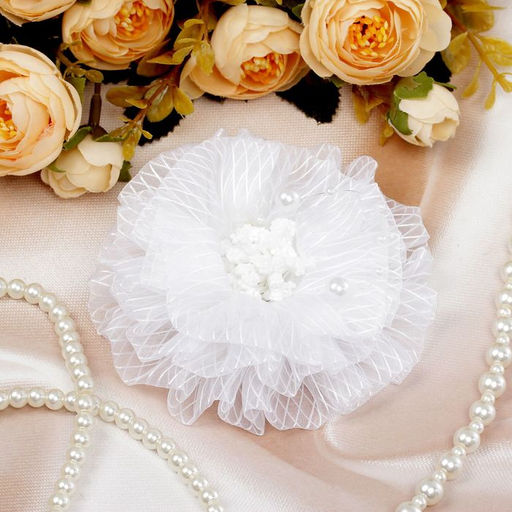 Цена за 6 шт. Бант для волос на резинке Школьница, полосатик серединка, d=9 см, белый