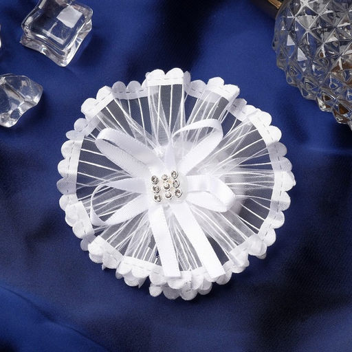Цена за 6 шт. Бант для волос на резинке Школьница, лучики серединка блеск, d=7 см, белый