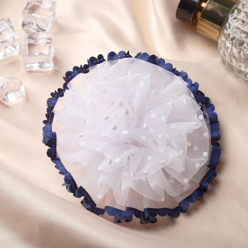 Цена за 6 шт. Бант для волос на резинке Школьница, волнушка горошек синие края, d=11 см, сине-белый