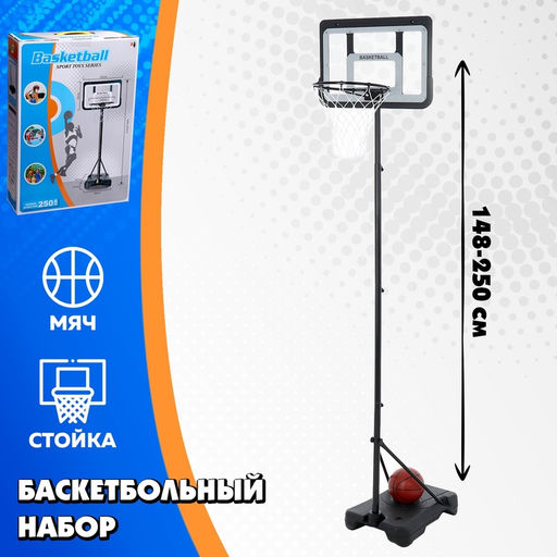Баскетбольное кольцо с щитом и стойкой, мяч и насос в наборе, диаметр мяча 21 см, кольца 30 см