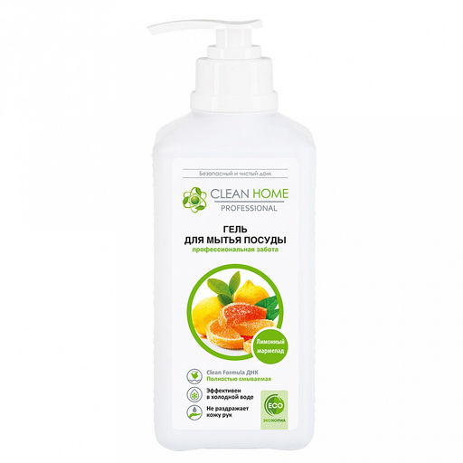 Гель для мытья посуды 1л, "Лимонный мармелад", с дозатором 9х7,5х24см, "Clean Home" (Россия)