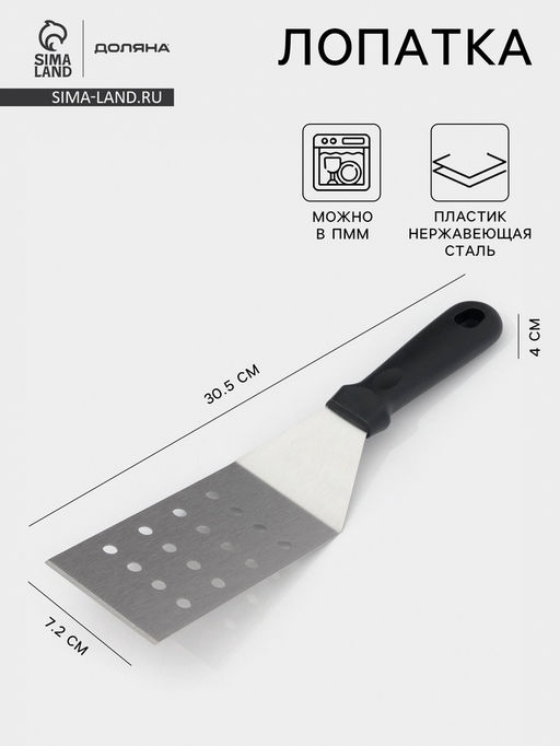 Лопатка перфорированная Доляна, 30.5?7.2 см, нержавеющая сталь, чёрная