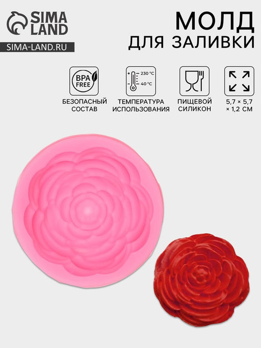 Молд для заливки Прекрасная роза, силикон, 5.7?5.7?1.2 см, МИКС
