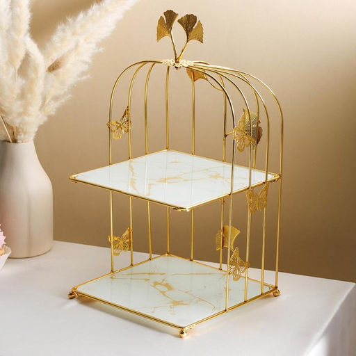 Подставка под десерты 2-х ярусная Мрамор, 21?21?43 см, цвет металла золотой
